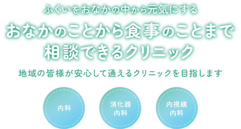 当院では、内視鏡診療・内科外来・食事栄養相談の面からみなさんの健康維持のお役に立ちたいと考えています。